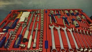 комбинированные ключи: 8, 10, 12, 13, 14, 17, 19 мм, клещи переставные 250 мм, шестигранные ключи: 2.5, 3, 4, 5, 6, 8, 10 мм